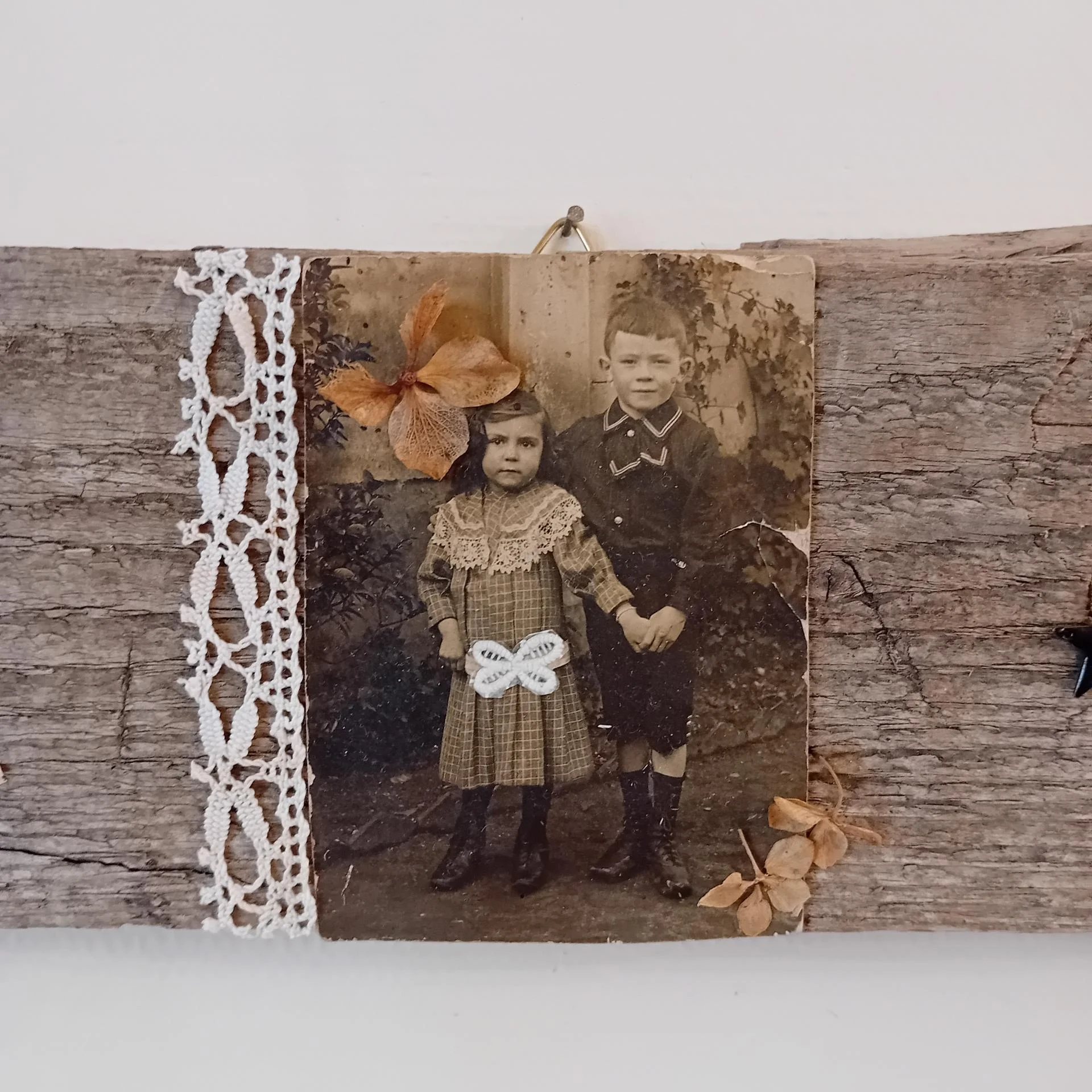 Les collages poétiques de Marion sont réalisés à partir de photos anciennes - parfois brodées ou retouchées à la peinture - mais aussi de dentelles, coquillages, fil de fer, plumes et mille petits trésors glanés ici ou là.