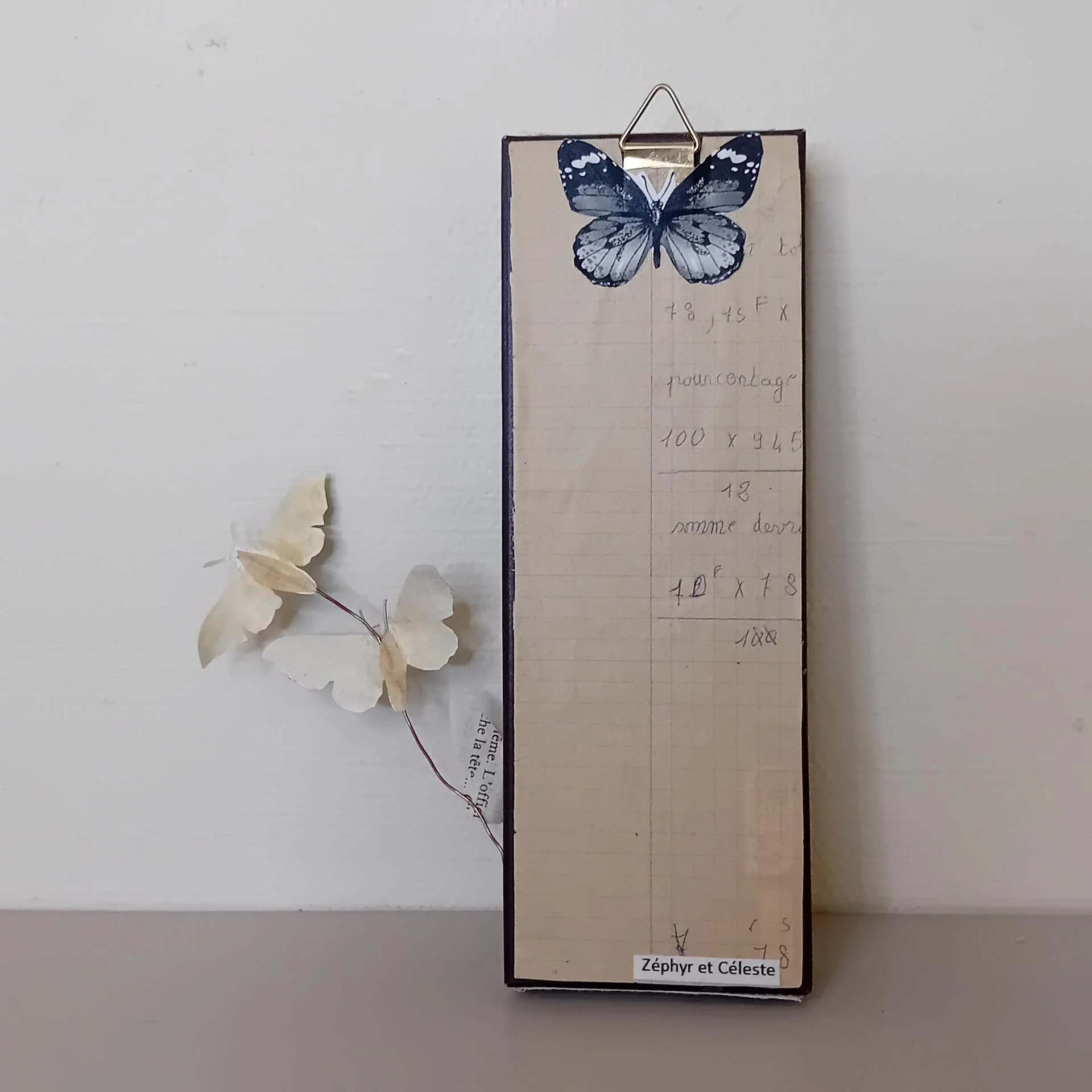 Boîte à bons points (vintage), photo ancienne, végétaux séchés, page de livre, papier crépon doré.