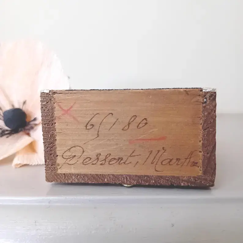 Boîte à bons points (vintage), photo ancienne, végétaux séchés, liste de courses (document ancien).